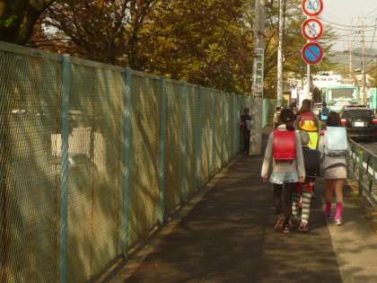 子供たちが、地区ごとに登校してきます。