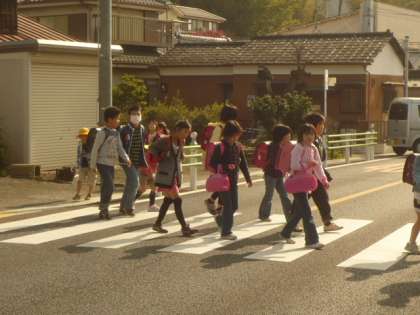 横断歩道をわたる子供たちいます。