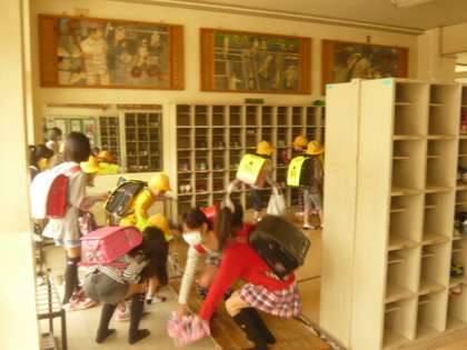 子供たちと一緒に、学校に到着しました。