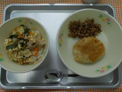 ♪クッパ じゃがもちの味噌だれ焼き くるみこうなご 牛乳♪