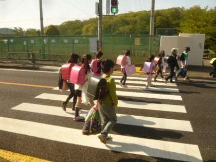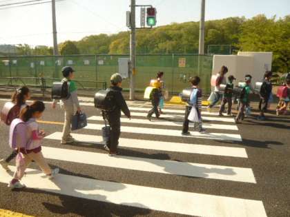 保護者の方が、子供たちの登校を見守ってくださっています。