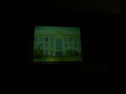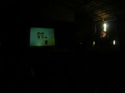 真っ暗な中に、1〜3年生の子供たちが、集まっています。