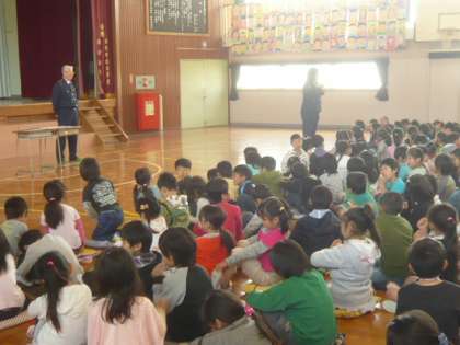 高尾警察の方々が、子供たちに「交通安全」について、お話をしてくださいます。