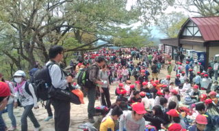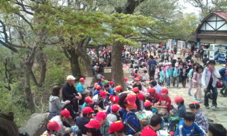 高尾山山頂に到着しました。お弁当もそろそろ食べ終わります。それにしても大混雑です。