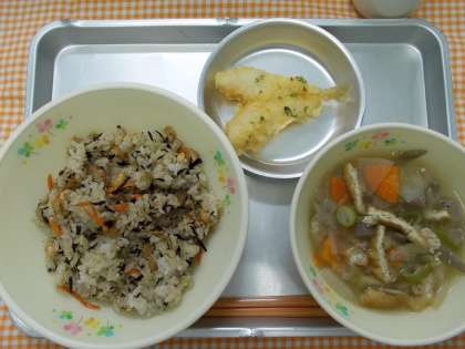 ♪ひじきごはん 魚の香味てんぷら みそけんちん 牛乳♪
