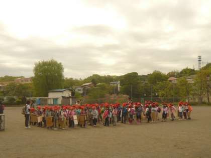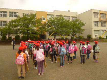 午前8時50分、すでに校庭には、子供たちが、集合しています。