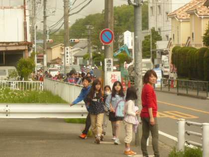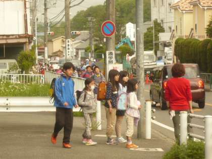 子供たちは、同じ学年の友達と一緒に帰ります。