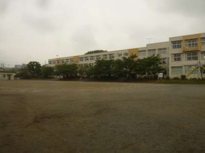 校庭をゆっくり歩きながら、体育館へ向かいます。