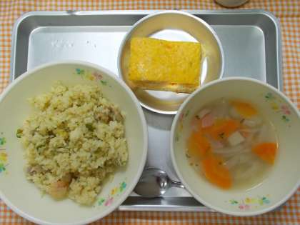 ♪パエリア チーズオムレツ コンソメスープ 牛乳♪