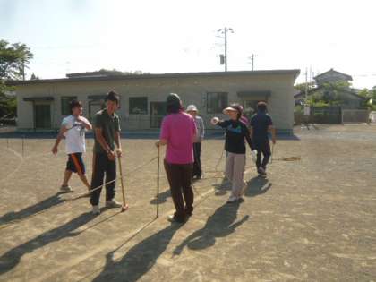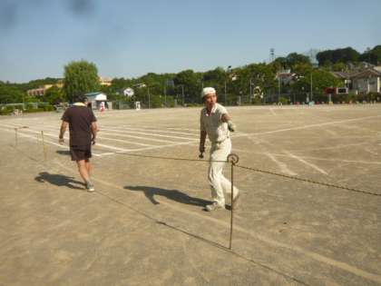 ロープを張るための、杭を打っているのです。