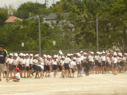 3年生に子供たちによる団体競技、「台風の目」が始まりました。