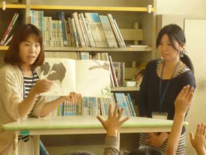 図書ボランティアの方々は、子供たちの表情を見ながら、上手に読み進めます。
