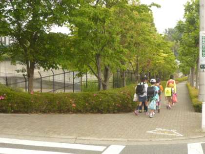 たくさんの子供たちが、坂道を下ります。