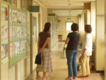 廊下から、そっと、教室の中の様子を見つめます。