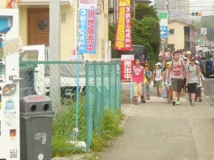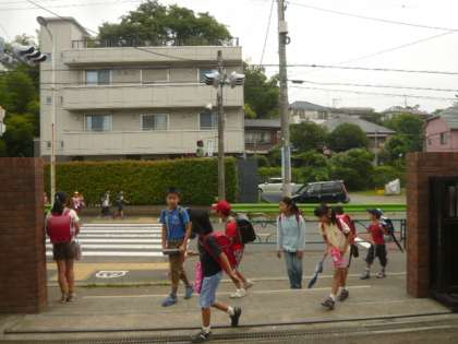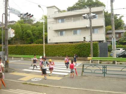 横山第一小学校のすぐそばには、大きな交差点があります。
