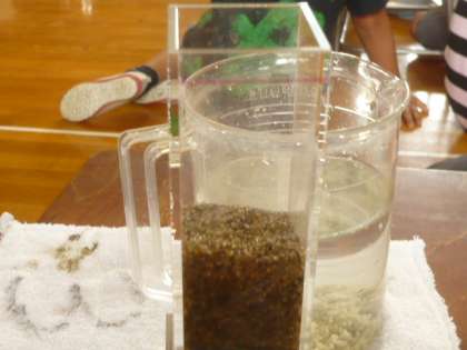 司会「ビーカーの底に沈んでいるのは、ゴミの固まりです。」