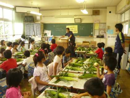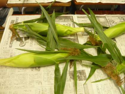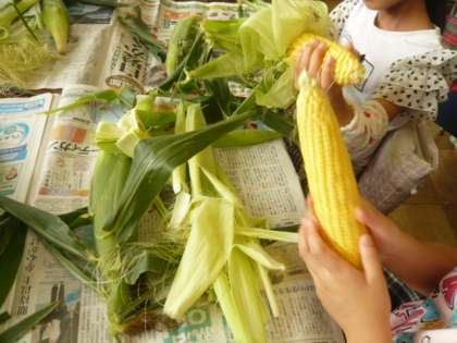 トウモロコシの皮をむいてみよう! 食育(7月7日 3年生編)PART2