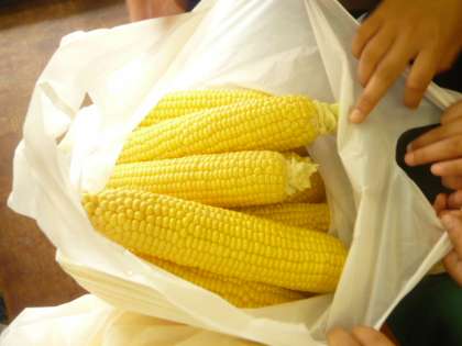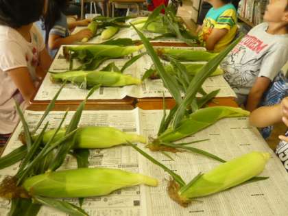 トウモロコシの皮をむいてみよう! 食育(7月7日 3年生編)PART3