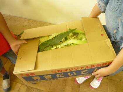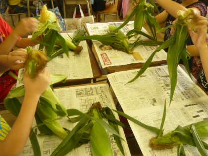 トウモロコシの皮をむいてみよう! 食育(7月7日 3年生編)PART4