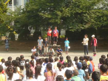 集会「今から、集会委員で見本を見せます。」