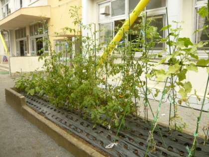 学級園には、たくさんの野菜が育っています。