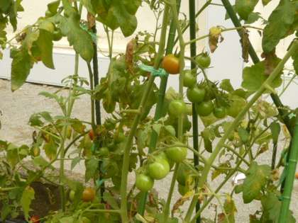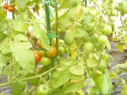 ミニトマト、ナス、キュウリ等、たくさんの野菜ができています。