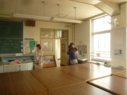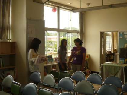 図書室の後ろでは、図書ボランティアの方々が、嬉しそうに微笑んでいます。