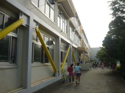 校舎の周りをグルッと見回ります。