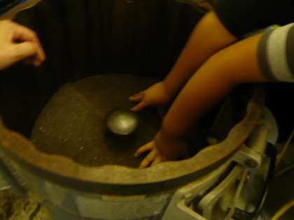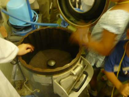 調理「この機械の中をジャガイモは、転がります。」