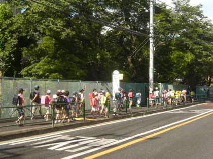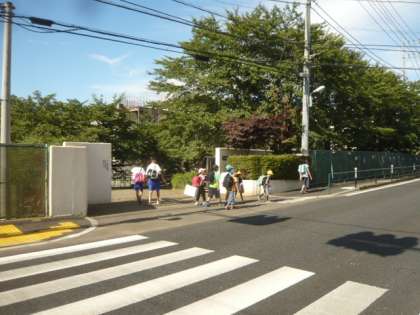 子供たちと一緒に、登校します。