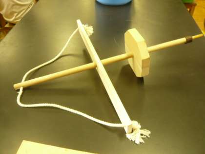 理科室の机の上には、おもしろい形をした道具が置いてあります。