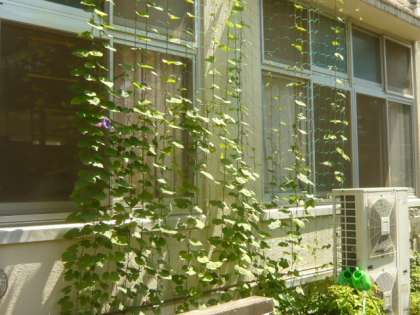 南校舎の壁面には、緑のカーテンが設置されています。