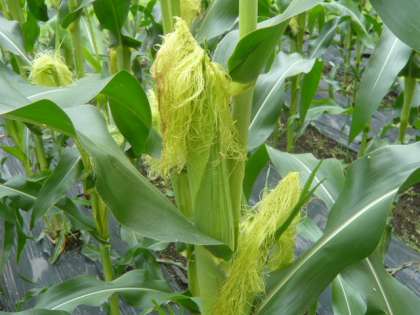 トウモロコシの実が、ぷっくり膨らんでいます。