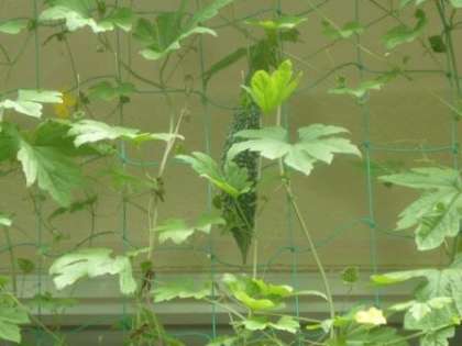 上の方には、ゴーヤの実が見えます。