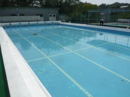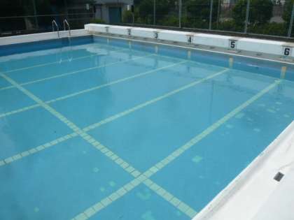 プールの底の青色やコースの白い線が、はっきり見えます。