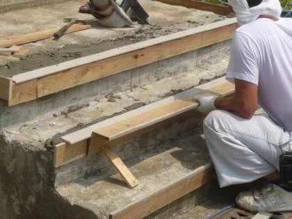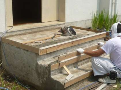 左官屋さんが、こてを動かすたびに、階段がきれいになります。