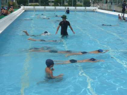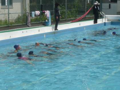子供たちは、久しぶりの学校のプールを楽しんでいます。