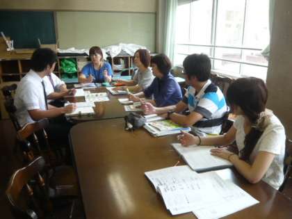 この日は、5年担当の先生方、外国語活動をお手伝いしてくださるボランティアの方、ALTの先生等による研修会です。