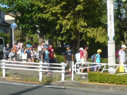 反対側の歩道にも、子供たちの姿が見えます。