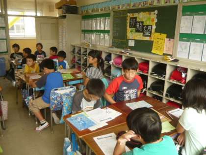 どの教室も、子供たちは、静かにまじめに学習しています。