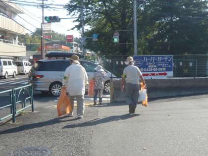 さわやかな秋の日差しの中を、子供たちが登校します。