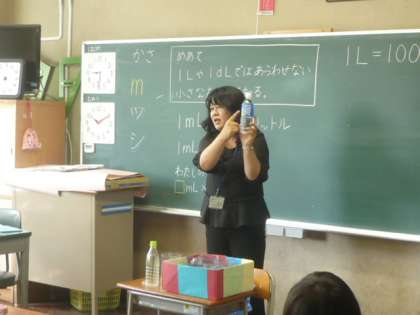 様々な「リットルます」を使用して、子供たちに「単位」を教えています。