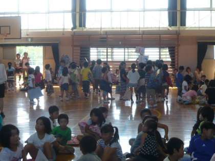 グループごとに分かれた子供たちは、自己紹介から始め、予定や持ち物等の確認をします。