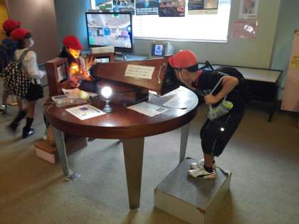 子供たちは、様々な道具の動きを、じっと見つめます。