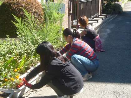 正門前にある「プランター」の花の手入れをしてくださいます。