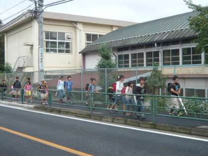 先頭を歩くのは、高学年の子供です。