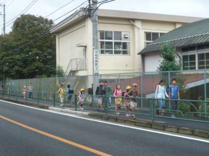子供たちは、一列を作り歩きます。