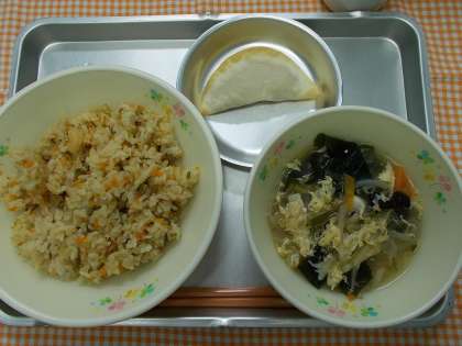 ♪五目チャーハン ツナポテトぎょうざ 中華スープ 牛乳♪