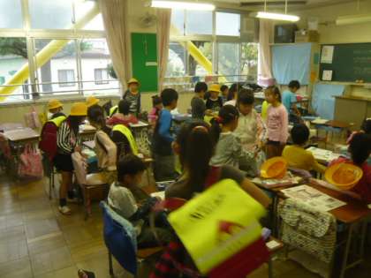 子供たちは、ランドセルを机におきます。