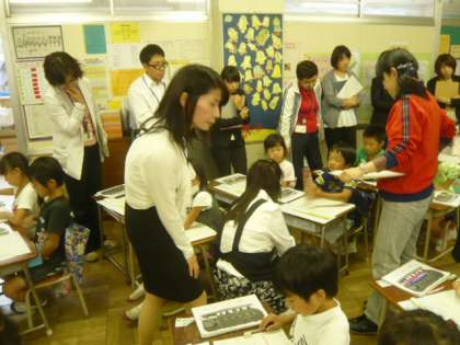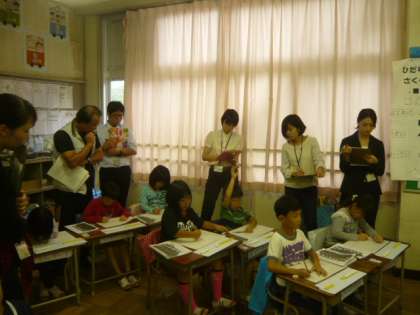 この日、1年生の子供たちの「算数」の授業を、全教員が参観しました。